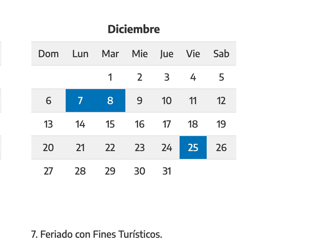 De hecho, fue expresamente previsto como feriado el 7 de diciembre. En esta nota se puede confirmar ese hecho, ya definido.