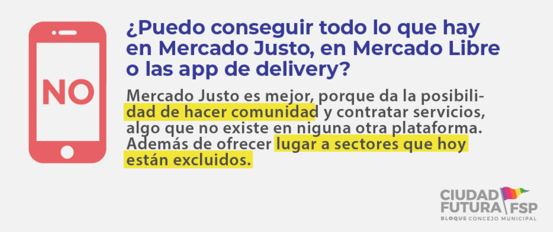 través de estrategias de fomento y promoción del consumo de los productos elaborados en la ciudad, el bloque de Ciudad Futura elaboró en 2016 un proyecto consistente en generar una herramienta de contacto directo entre productores/as de la economía social y popular y consumidores/as.