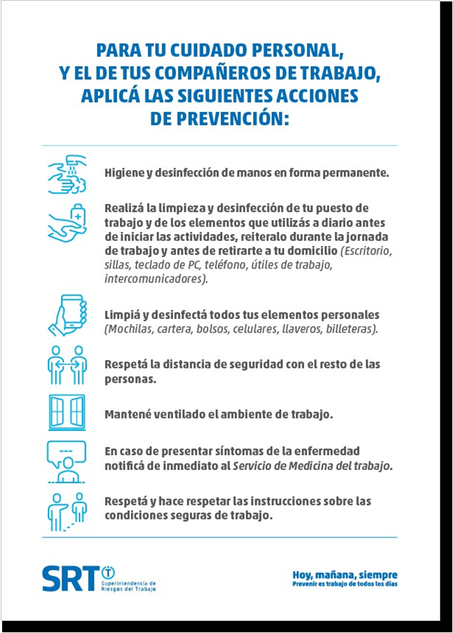 Si bien este protocolo es para la SRT, marca un ejemplo para aquellas actividades que se reanuden. El regreso al trabajo solo puede ir acompañado de un protocolo de prevención. Se publica una parte.