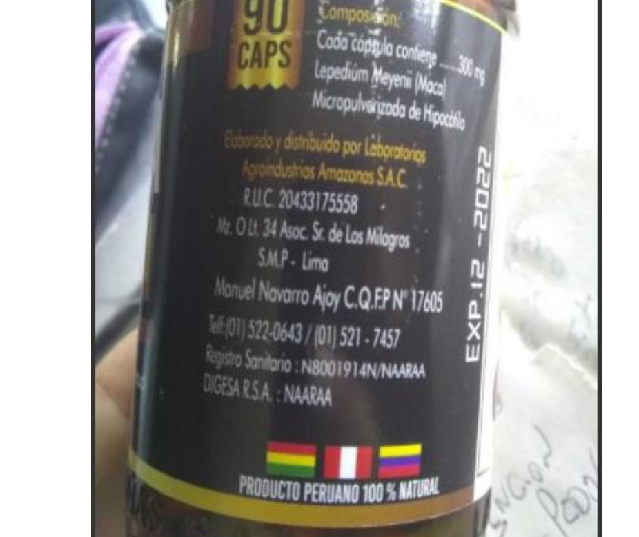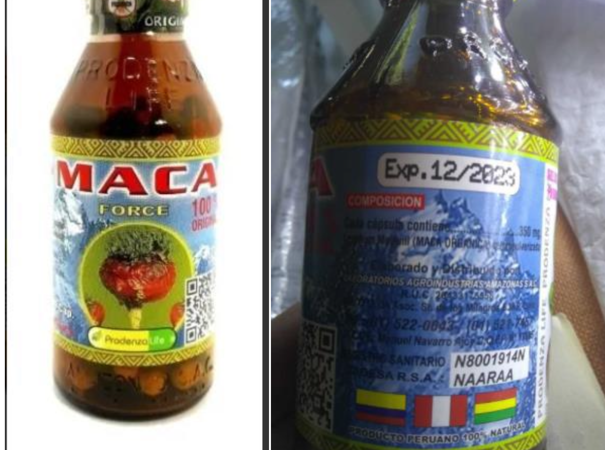 Se vendía en plataformas de venta en línea de los productos de la marca Prodenza Life “Suplemento Nutricional MACA NEGRA” y “MACA FORCE”, Elaborados y distribuidos por Laboratorios Agroindustrias Amazonas SAC – RUC 20433175558, Registro Sanitario N8001911914N/NAARAA, DIGESA RSA – Asoc Sr de los Milagros SMP, LIMA, Producto Peruano 100%, que no cumplen la normativa vigente.