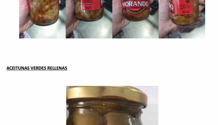 ARTÍCULO 1°.- Prohíbese la elaboración, fraccionamiento y comercialización en todo el territorio nacional y en plataformas de venta en línea de los productos: “Berenjenas” de la marca Morando Alimentos, Fraccionado y Distribuido por: Olivos del Sur Alimentos S.R.L – Nahuel Huapi 1595, Pontevedra, Pdo. de Merlo, Prov. de Buenos Aires, en cualquier presentación, lote y fecha de vencimiento, por carecer de registros de establecimiento y de producto; “Berenjenas en aceite” RNPA 02-570774, “Aceitunas verdes rellenas” RNPA 02-570772” y “Aceitunas verdes” RNPA 02-570770”, todos de la marca Morando Alimentos, RNE 02-034665, Fraccionado y Distribuido por: Olivos del Sur Alimentos S.R.L – Nahuel Huapi 1595, Pontevedra, Pdo. de Merlo, Prov. de Buenos Aires, en cualquier presentación, lote y fecha de vencimiento, por carecer de registros sanitarios y estar falsamente etiquetados al exhibir en sus rótulos un número de RNE perteneciente a otra razón social y números de RNPA inexistentes; y “Ajíes en vinagre” RNPA 03001163-5, de la marca Morando Alimentos, RNE 03000150, Fraccionado y Distribuido por: Olivos del Sur Alimentos S.R.L – Nahuel Huapi 1595, Pontevedra, Pdo. de Merlo, Prov. de Buenos Aires, en cualquier presentación, lote y fecha de vencimiento, por carecer de registros sanitarios y estar falsamente etiquetados al exhibir en sus rótulos números de RNE y de RNPA inexistentes, resultando ser productos ilegales.