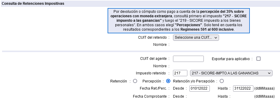 Las percepciones pueden realizarse bajo dos códigos: 217 (Ganancias) o 219 (Bs Pers). Antes de ver en qué caso caés, es importante revisar en “Mis Retenciones” bajo qué código te hicieron las percepciones, ya que puede afectar el método de devolución.