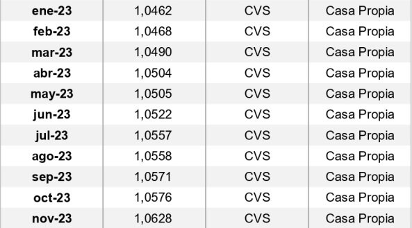 Para calcular el aumento del alquiler, primero es necesario obtener los valores del coeficiente Casa Propia de los últimos seis meses y multiplicarlos entre sí. Luego, ese resultado se multiplica por la cuota de alquiler actual. A continuación, se presenta un ejemplo utilizando el caso de alguien que ha estado pagando un alquiler de $70,000 desde mayo de 2023 y necesita saber cuánto deberá pagar a partir de noviembre de 2023: