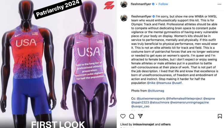 Ella agregó: “Esto no es un kit atlético de élite para pista y campo. Es un disfraz nacido de fuerzas patriarcales que ya no son bienvenidas ni necesarias para atraer la atención sobre los deportes femeninos. … Dejen de hacerlo más difícil para la mitad de la población @nike @teamusa @usatf.”