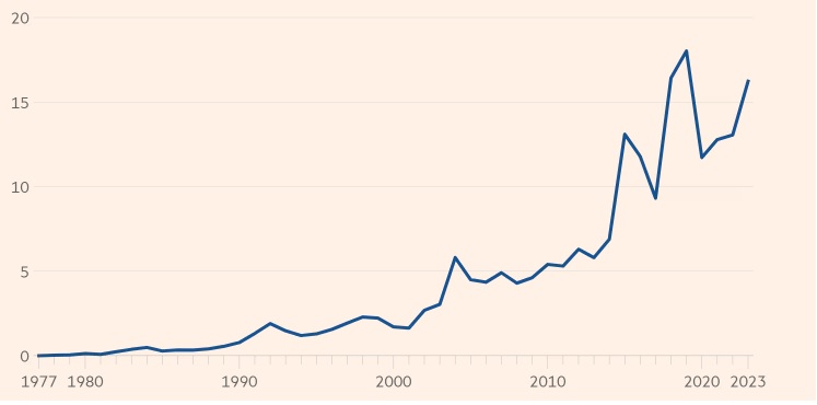 Pero el cambio más notable se observa en Estados Unidos. Ronald Reagan declaró que “las nueve palabras más aterradoras en el idioma inglés son: Soy del gobierno y estoy aquí para ayudar”. Hoy, la administración de Biden está “ayudando” con entusiasmo. Donald Trump, también, es intervencionista, con la diferencia de que su manera de ayudar es aumentar los aranceles. Dado su papel histórico como defensor de la economía mundial abierta, este cambio es significativo.