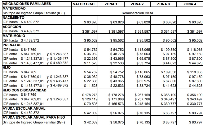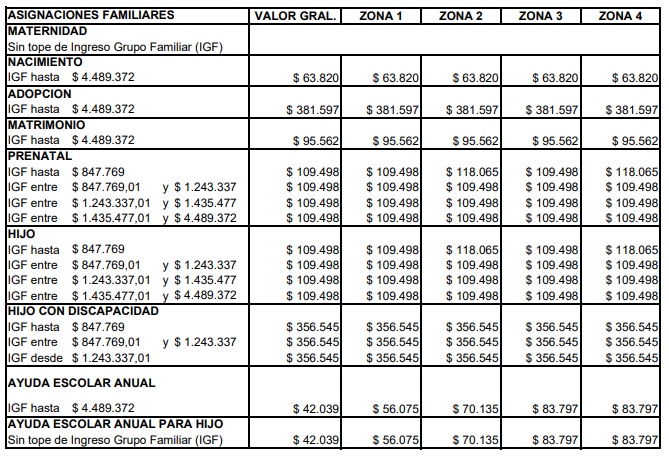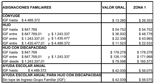 Los rangos y montos de asignaciones familiares se actualizan a partir de junio de 2025.