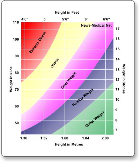 La OMS define a un adulto que tenga un BMI entre 25 y 29,9 como exceso de peso. Un adulto que tenga un BMI de 30 o más alto se considera obeso. Entre 18,5 a 24,9 es el peso sano, es un rango (fuente).